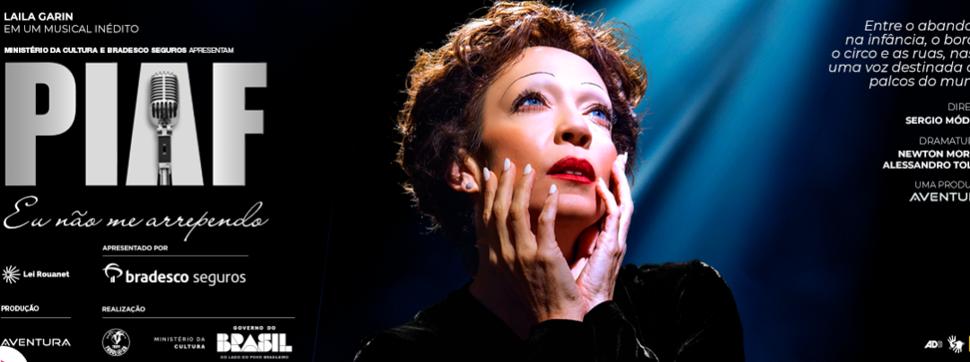 A trajetória de Édith Piaf (1915-1963) é marcada por imenso sucesso, mas também por muitas perdas, tropeços, recomeços, desafios e superações. Uma das maiores vozes do século XX, a cantora francesa eternizou sucessos e transformou em canto e potência criativa toda a sua acidentada biografia. Com a estreia de ‘PIAF – Eu não me arrependo’, sua história vai ressurgir nos palcos em um espetáculo inédito, com texto de Newton Moreno e Alessandro Toller, direção de Sergio Módena, Laila Garin no papel-título em mais uma superprodução da Aventura.